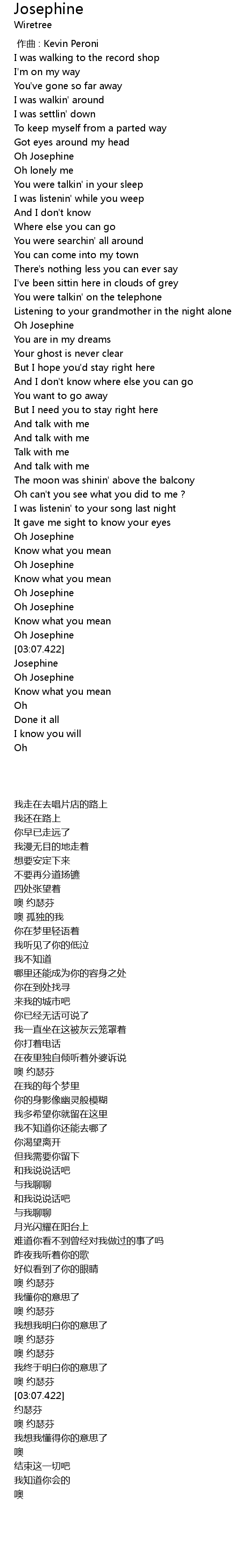 | [03:03.662] | Oh Josephine |