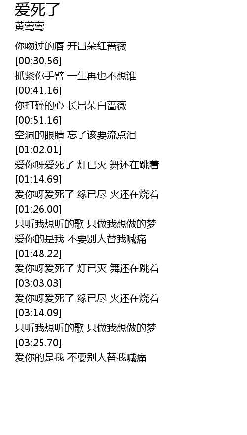 | [03:03.83] | 爱你呀爱死了 缘已尽 火还在烧着 |