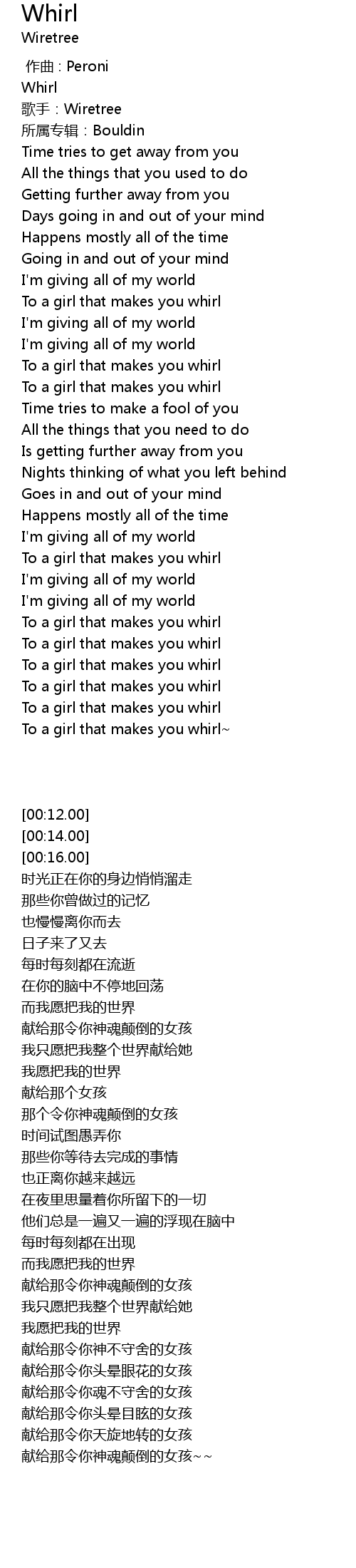 | [00:12.00] | Whirl |