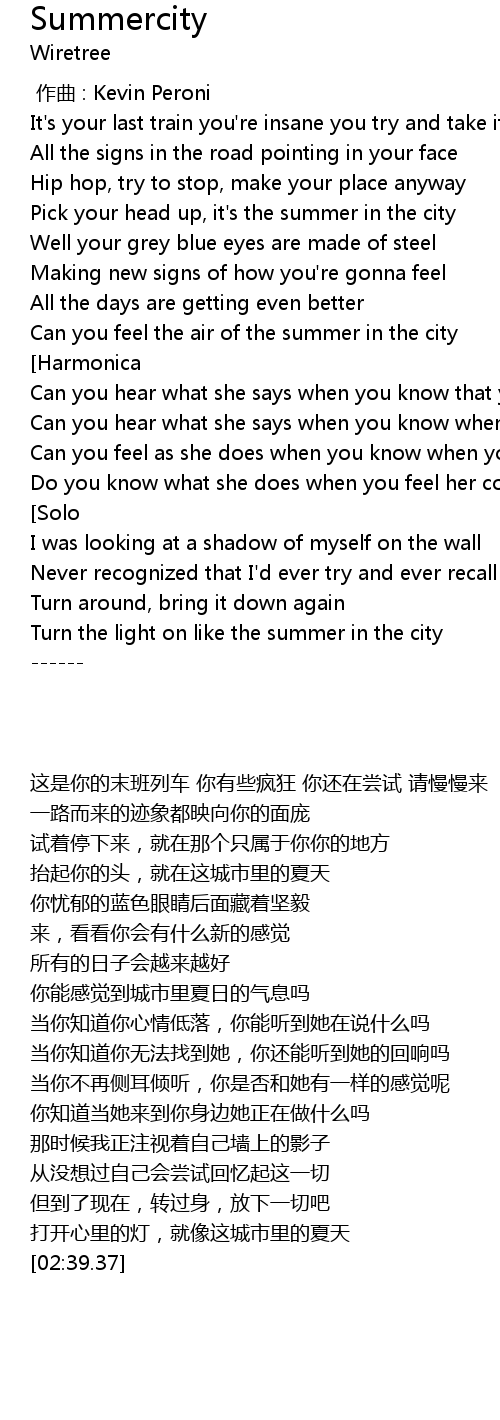 | [00:31.10] | Pick your head up, it's the summer in the city |