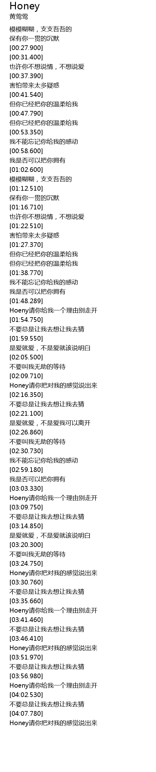 | [03:57.930] | Hoeny请你给我一个理由别走开 |