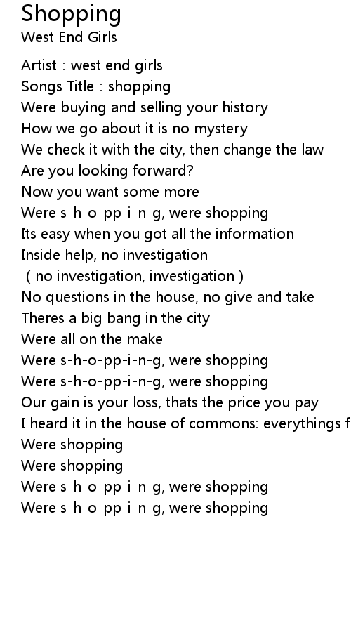 | [00:46.74] | Were s-h-o-pp-i-n-g, were shopping |