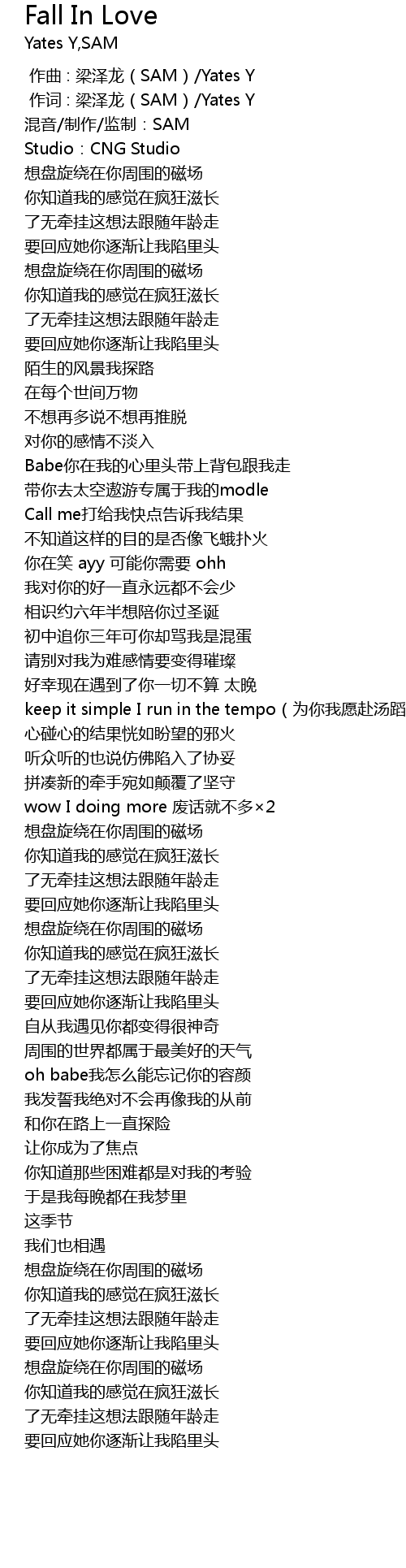 | [00:01.000] | 作词 : 梁泽龙(SAM)/Yates Y |