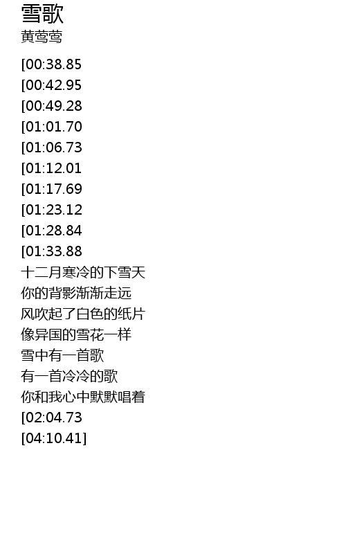 | [01:45.26][00:38.85] | 雪中有一首歌 |