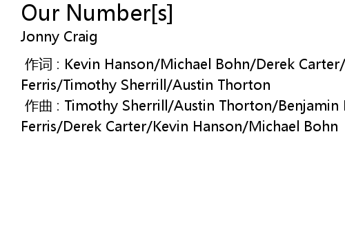 | [00:00.000] | 作词 : Kevin Hanson/Michael Bohn/Derek Carter/Benjamin Ferris/Cory Ferris/Timothy Sherrill/Austin Thorton |