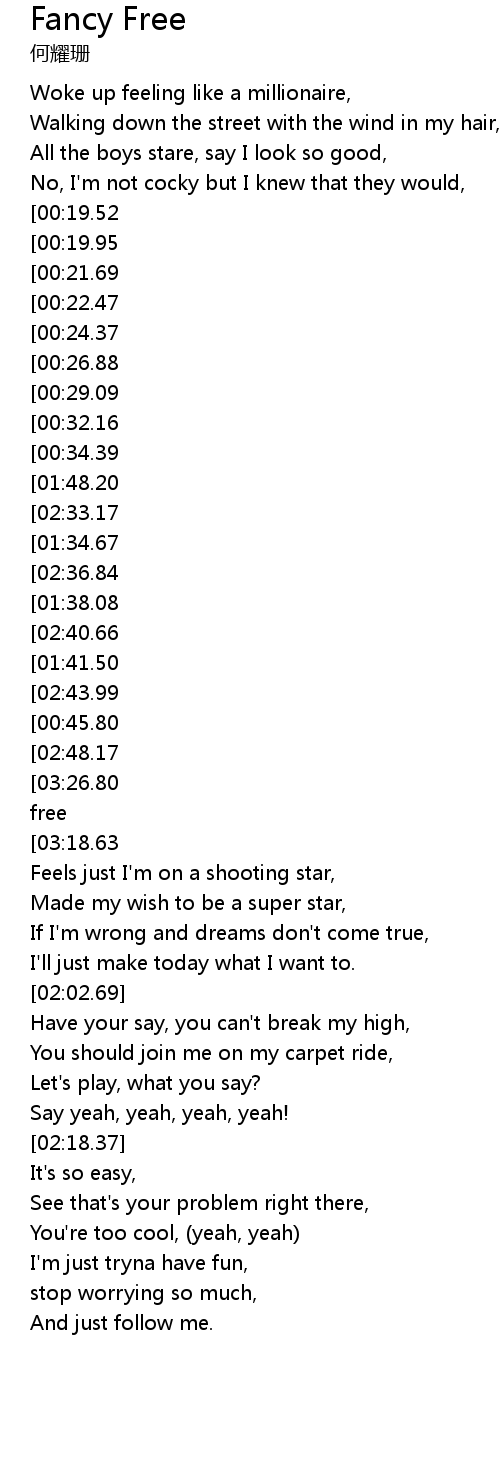 [03:30.71][03:26.80][03:23.60][03:19.80][03:16.73][02:58.11][02:51.03] I'm fancy free