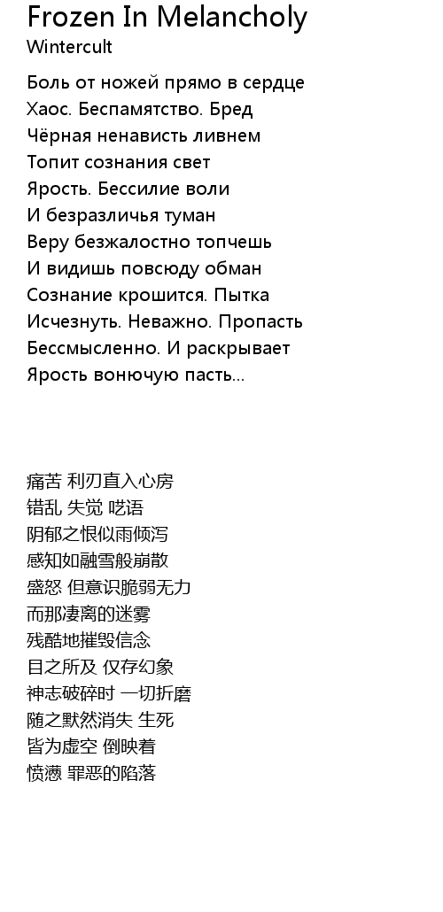 | Song | Frozen In Melancholy |