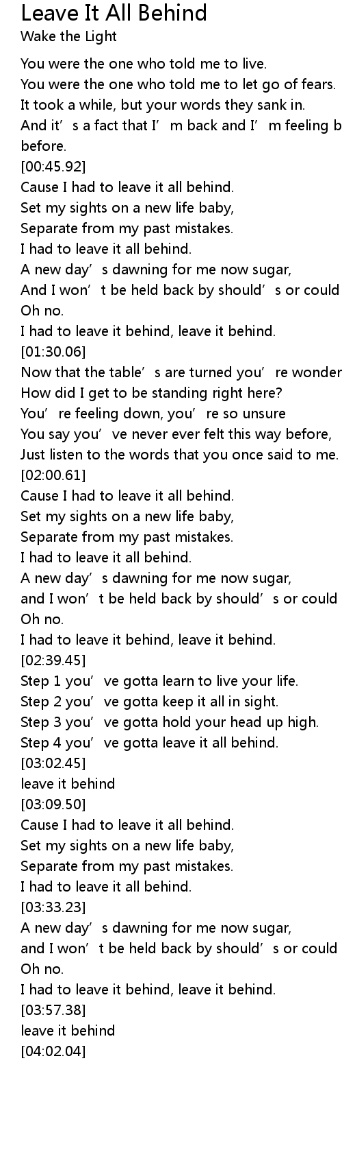 | [03:49.56] | I had to leave it behind, leave it behind. |