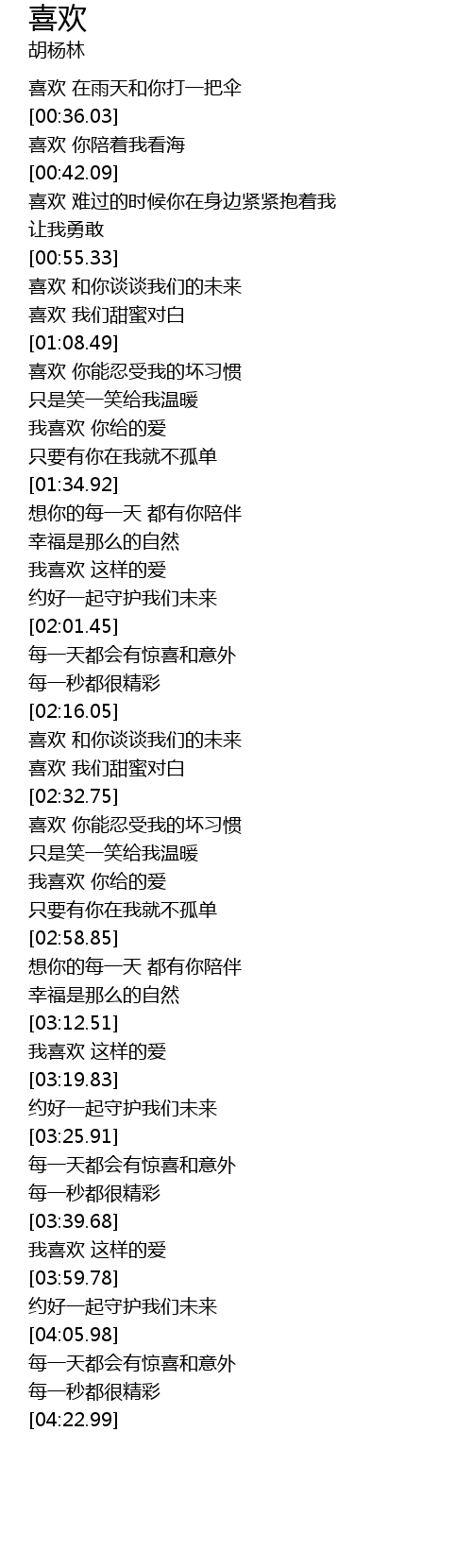 | [00:36.57] | xi huan ni pei zhe wo kan hai |