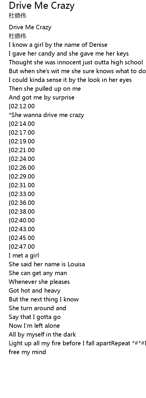 | [00:02.00] | Drive Me Crazy |
