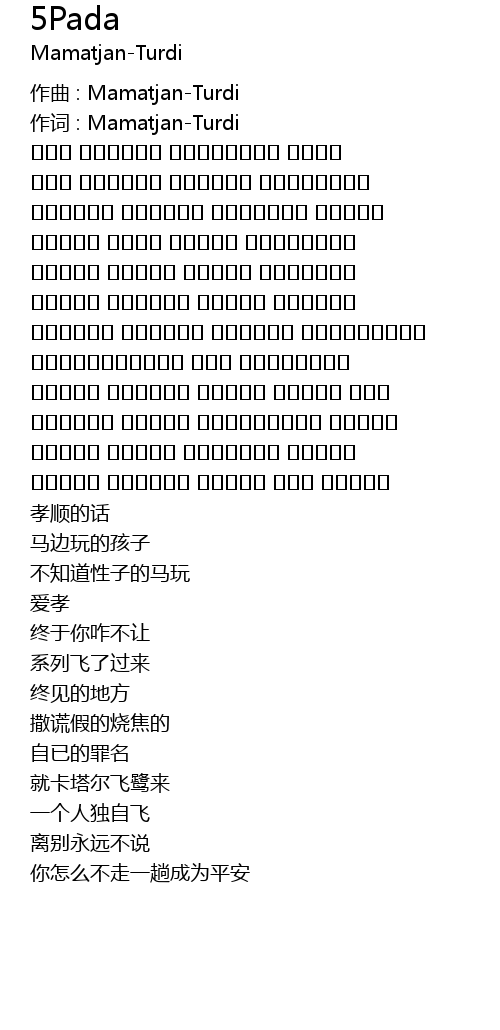 | 作词 : Mamatjan-Turdi | |