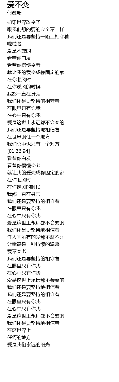 | [00:31.76] | 爱是不变的 |