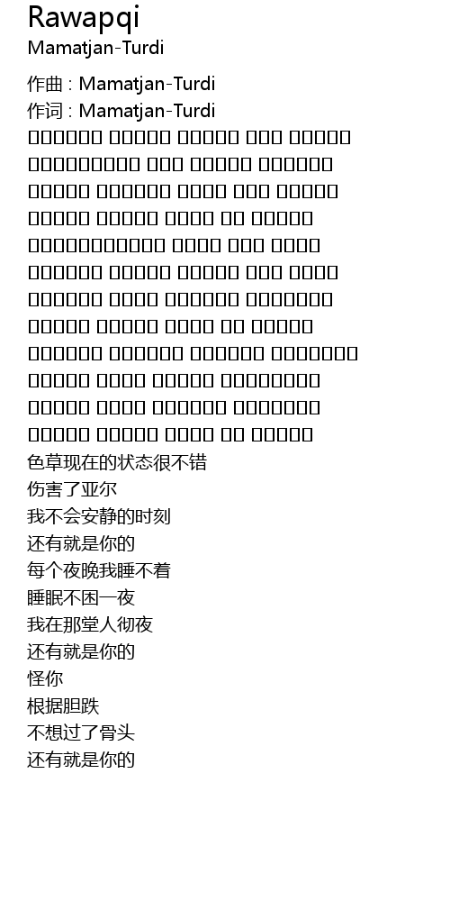 | 作词 : Mamatjan-Turdi | |