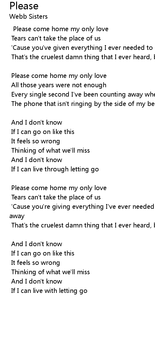 Please come home my only love |