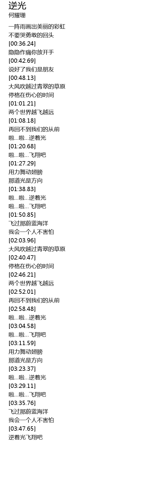 | [03:49.04] | nì zhe guāng fēi xiáng ba |