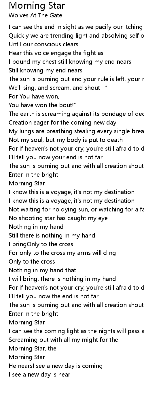 | I can see the coming light as the nights will pass and the dawn it clears | |