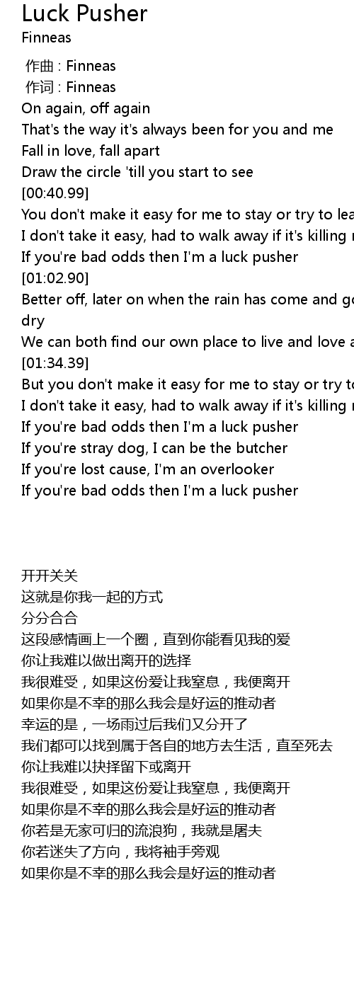 | [01:54.33] | If you're bad odds then I'm a luck pusher |