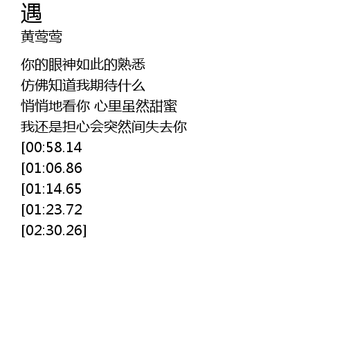 | [01:55.38][00:58.14] | ǒu rán jiān xiāng yù jiù xiàng shì qí jī |