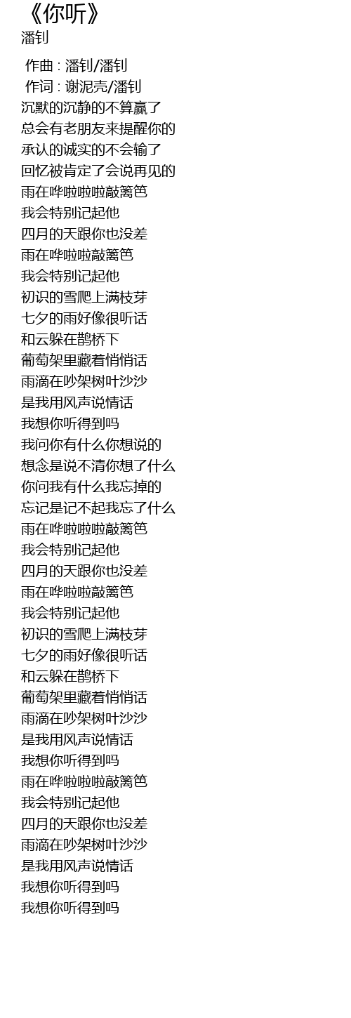 | [00:00.000] | 作曲 : 潘钊/潘钊 |