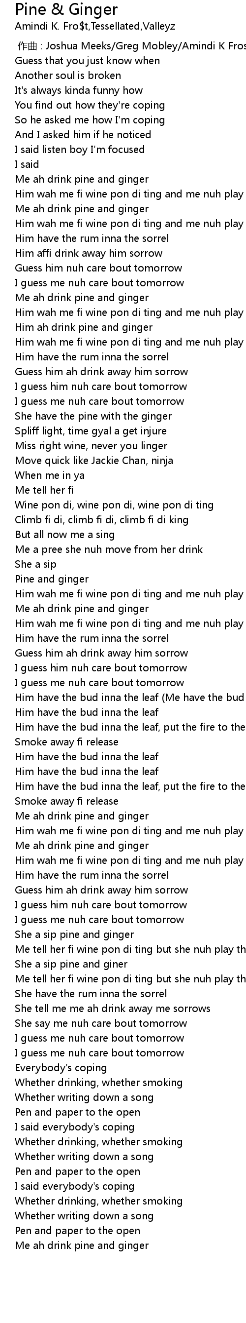 | [01:54.04] | Me ah drink pine and ginger |