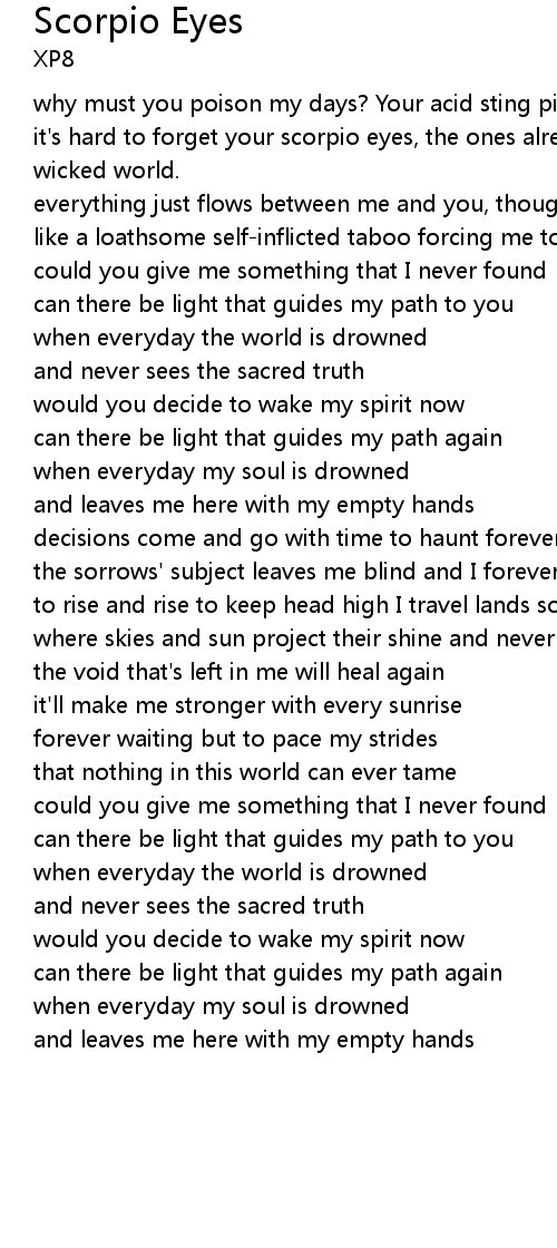 it's hard to forget your scorpio eyes, the ones already dragging me into their wicked world. |