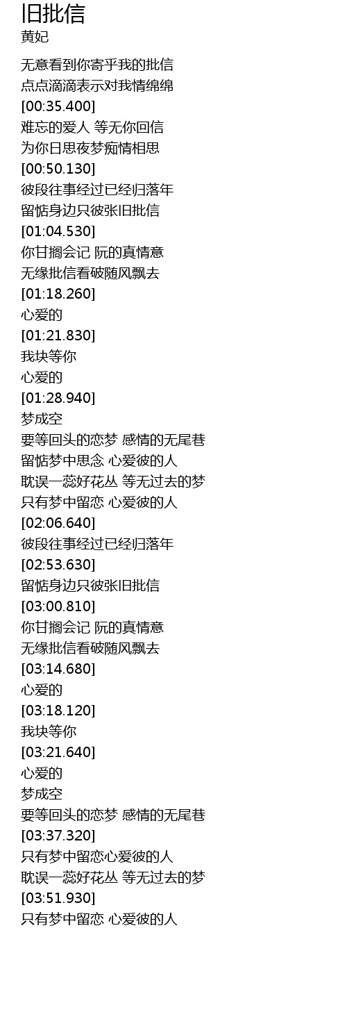 | [02:54.380] | 留惦身边只彼张旧批信 |
