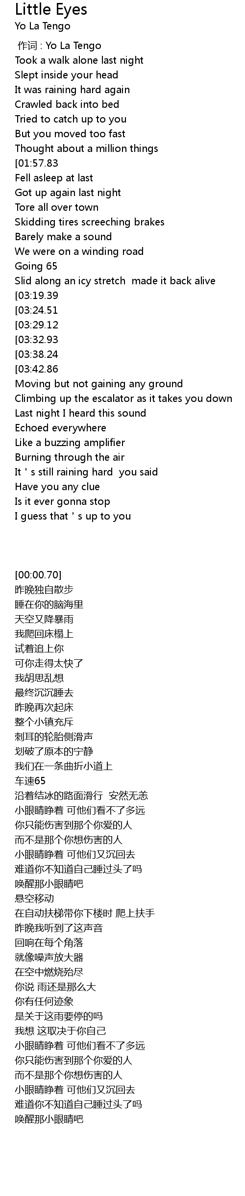 | [01:42.60][03:32.93] | Little eyes are open but they re sinking back again |