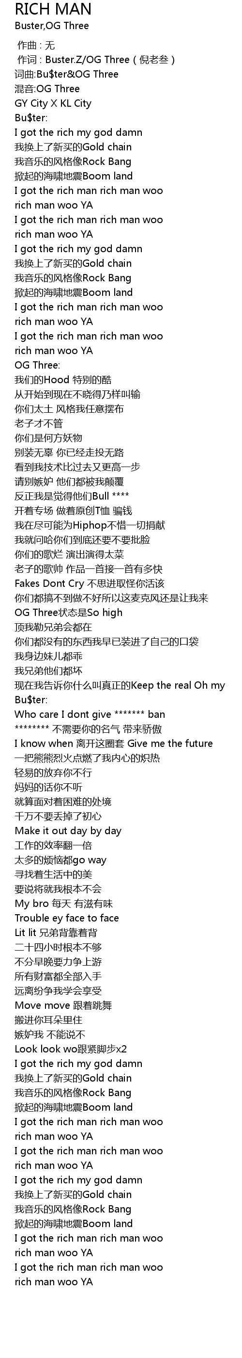 | [02:59.20] | I got the rich my god damn |