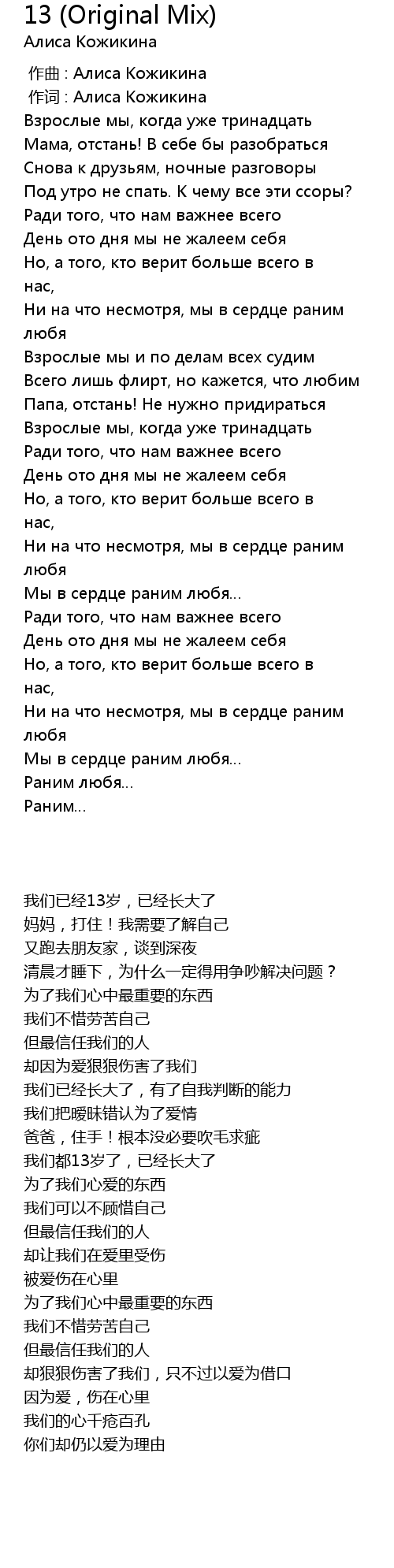 作词 : Алиса Кожикина |