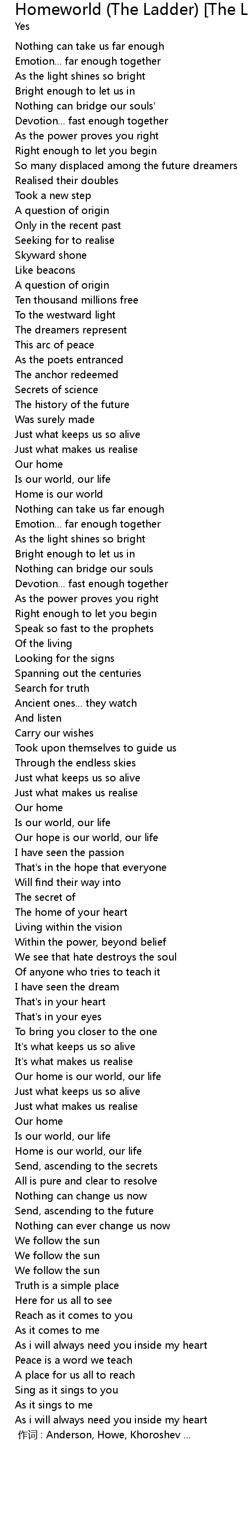 | Song | Homeworld (The Ladder) [The Ladder] |