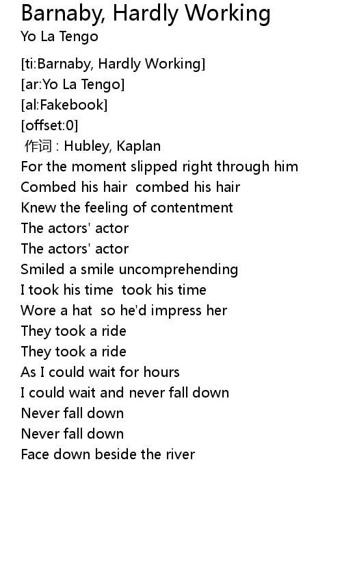 | [00:00.00] | zuo ci : Hubley, Kaplan |
