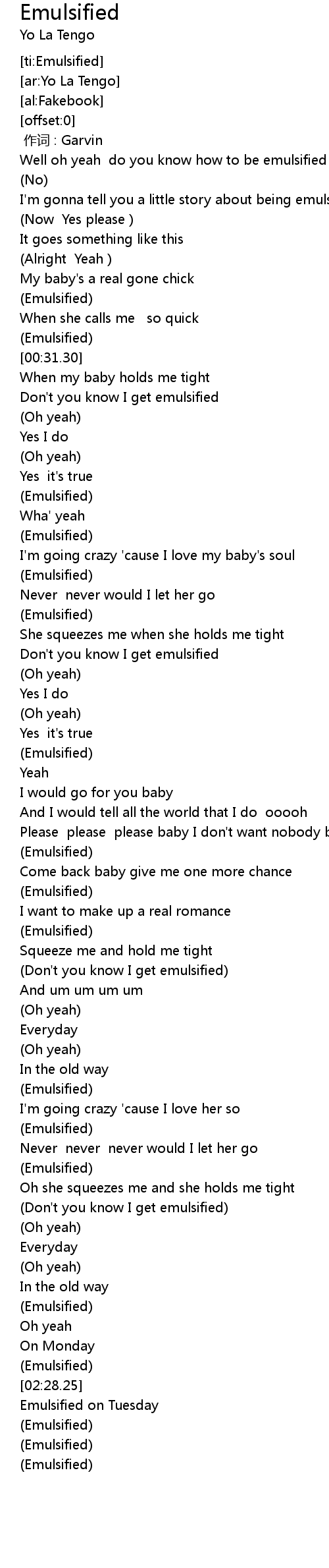 | [00:02.98] | Well oh yeah do you know how to be emulsified now |
