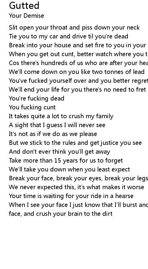 When I see your face I just know that I'll burst and explode my fist on your face, and crush your brain to the dirt |