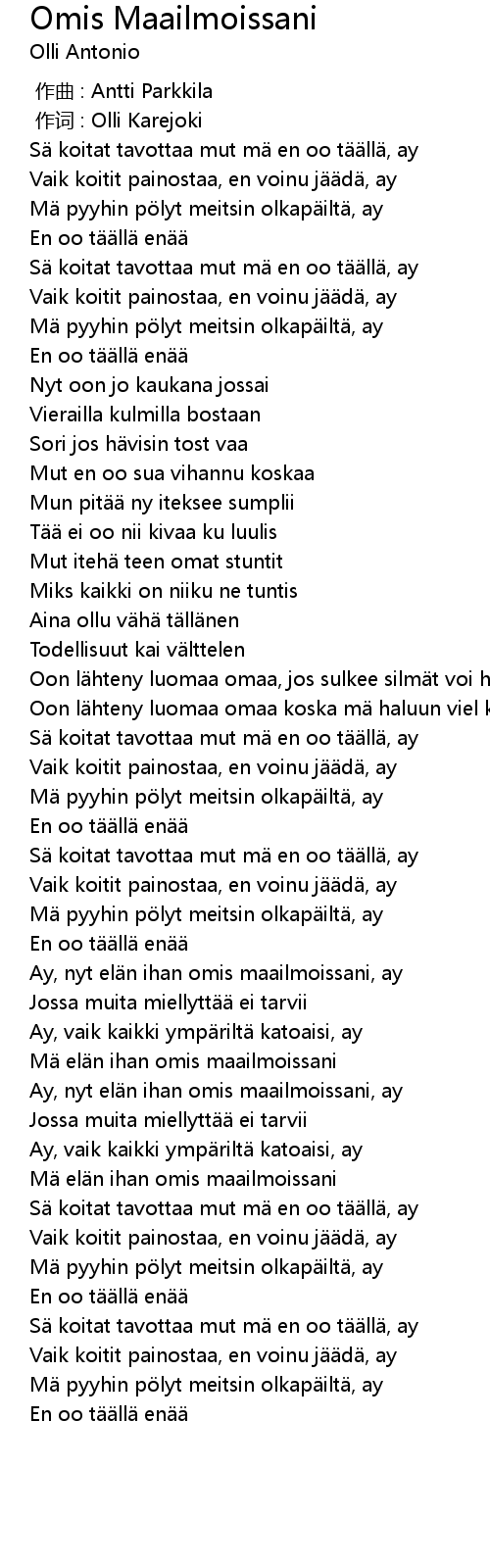| Song | Omis Maailmoissani |