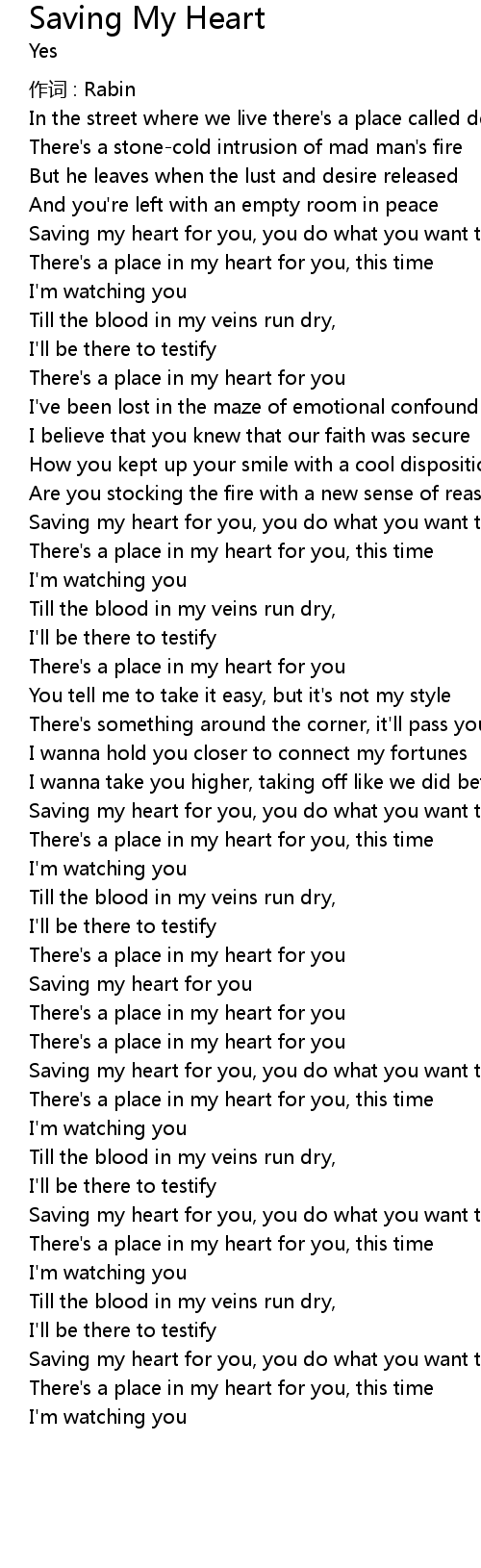 | Saving my heart for you, you do what you want to do | |