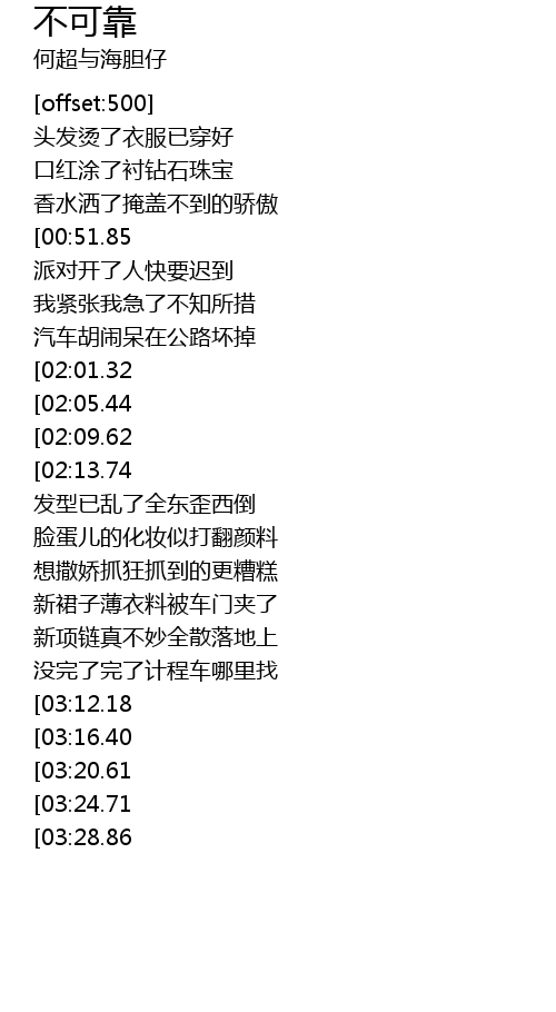 | [02:34.63][03:28.86] | 一切也不可靠 |