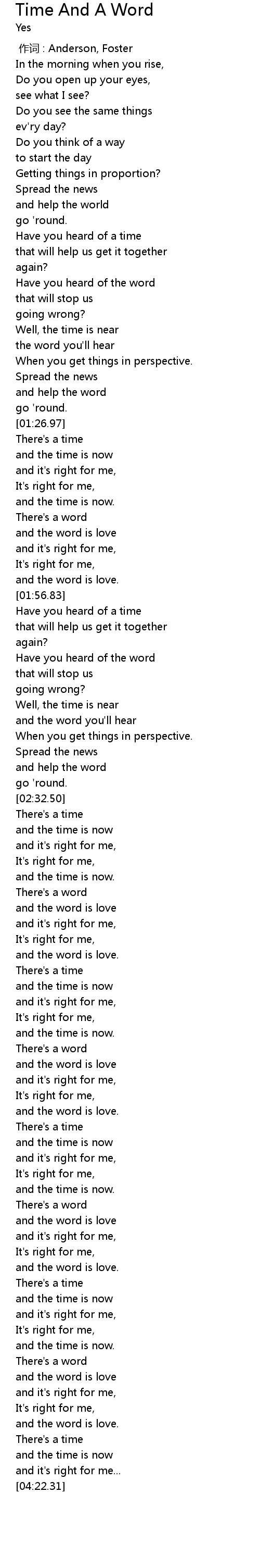 | [04:19.41] | and the time is now |