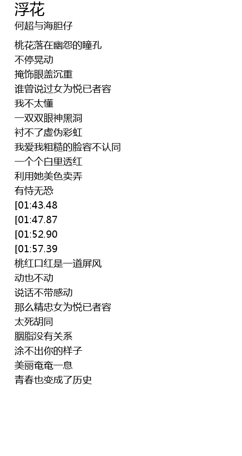 | [00:56.43][01:43.48][02:49.44] | 胭脂掩盖无知 |