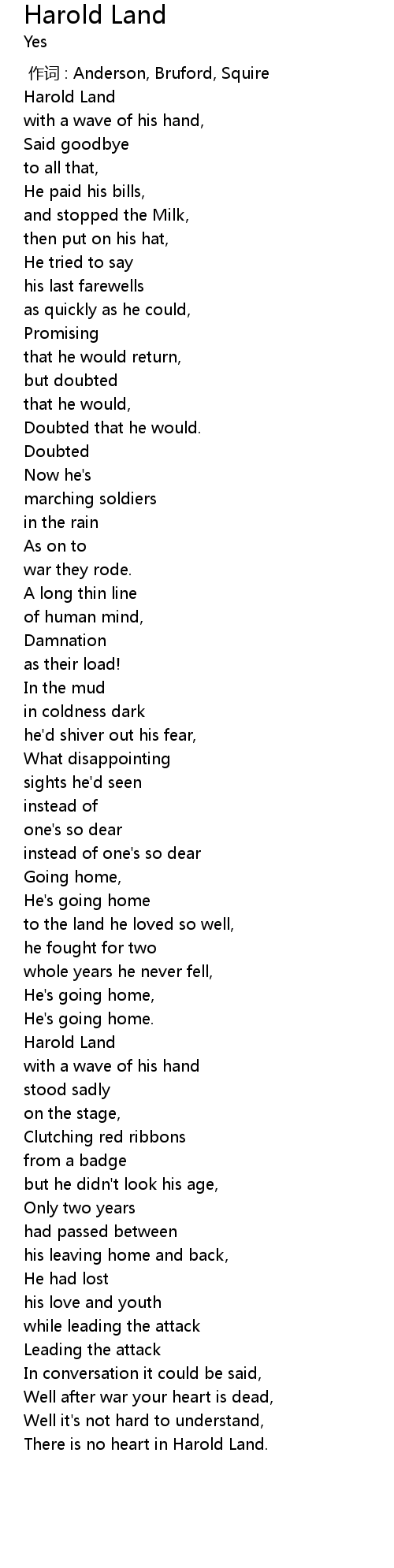 | [00:00.00] | 作词 : Anderson, Bruford, Squire |
