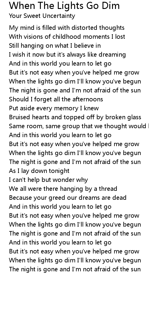 When the lights go dim I'll know you've begun |