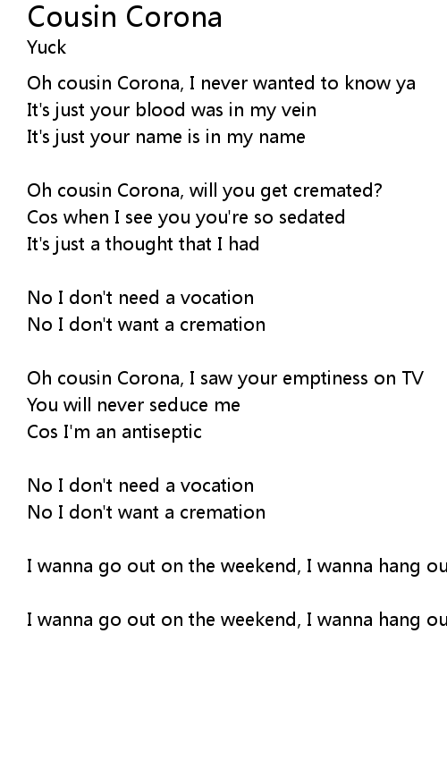 | Oh cousin Corona, I saw your emptiness on TV | |