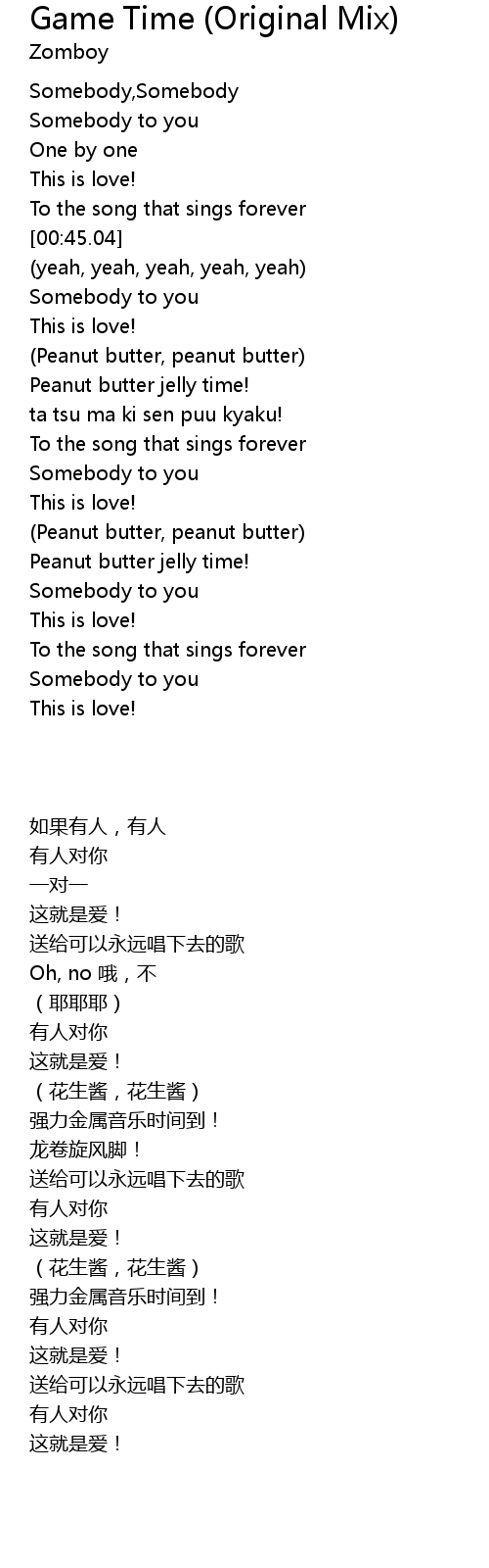 | [02:35.89] | (Peanut butter, peanut butter) |