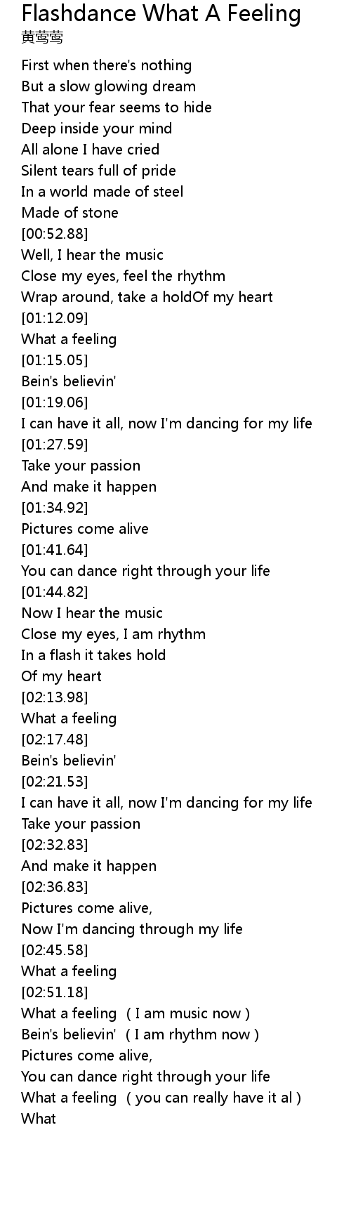 | [01:20.42] | I can have it all, now I'm dancing for my life |