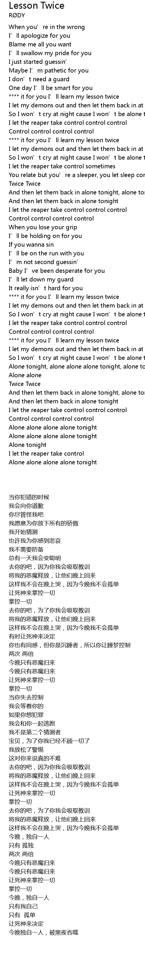 | [02:58.44] | Alone alone alone alone tonight |