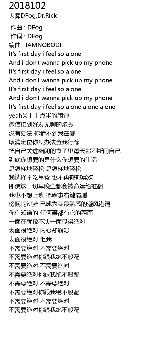 | [01:43.71] | 不需要绝对 不需要绝对 |
