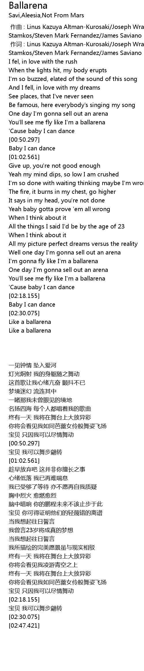 | [00:43.331] | You' ll see me fly like I' m a ballarena |