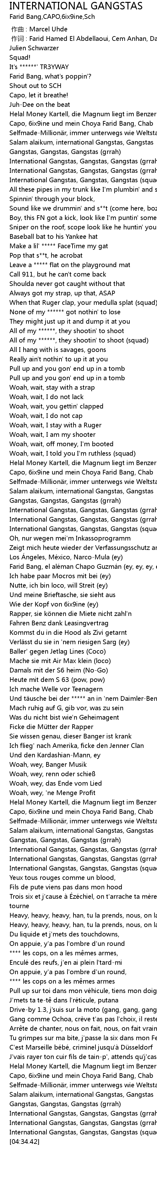 | [00:15.44] | Capo, 6ix9ine und mein Choya Farid Bang, Chab |
