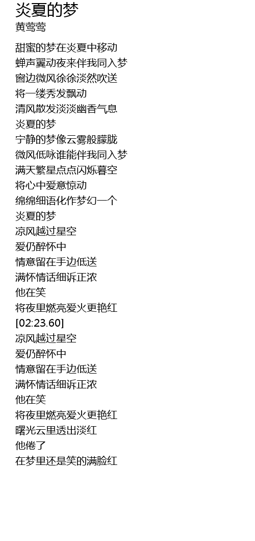 | [00:20.81] | 甜蜜的梦在炎夏中移动 |
