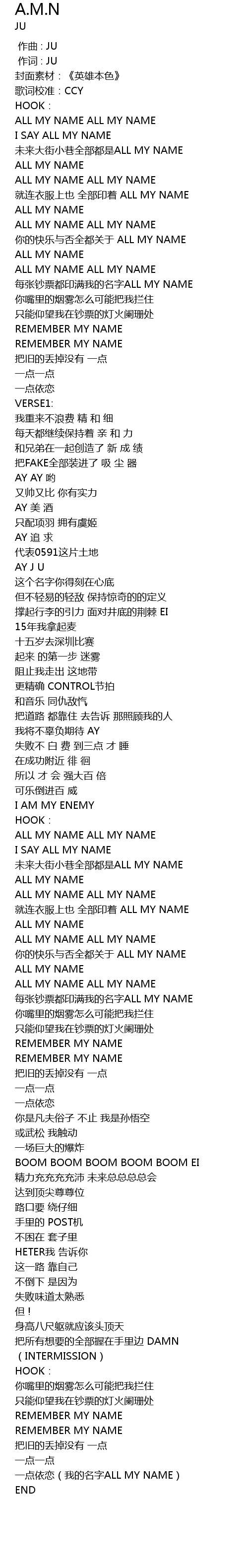 | [00:33.64] | 每张钞票都印满我的名字ALL MY NAME |