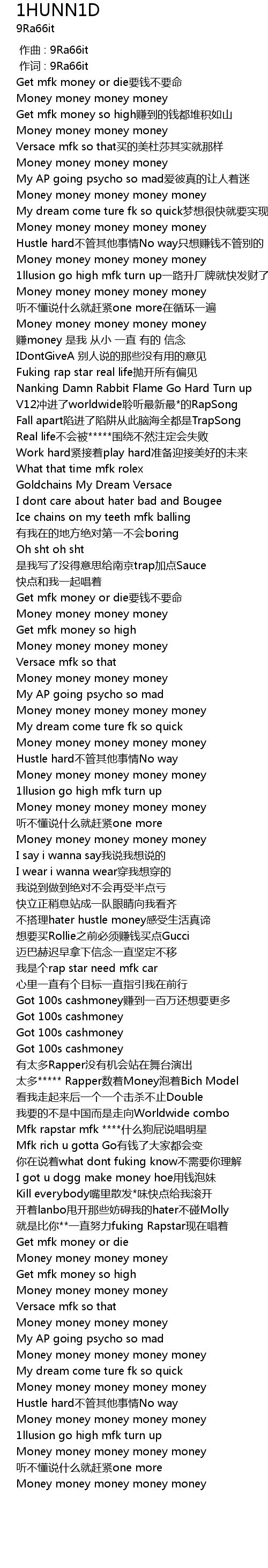 | [01:43.568] | Get mfk money or die要钱不要命 |